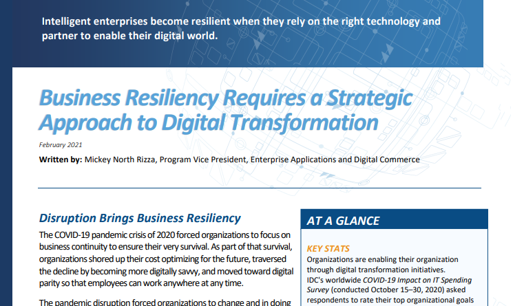 Read the IDC Market Spotlight, “Business Resiliency Requires a Strategic Approach to Digital Transformation”, to explore how an intelligent ERP system can help you to: